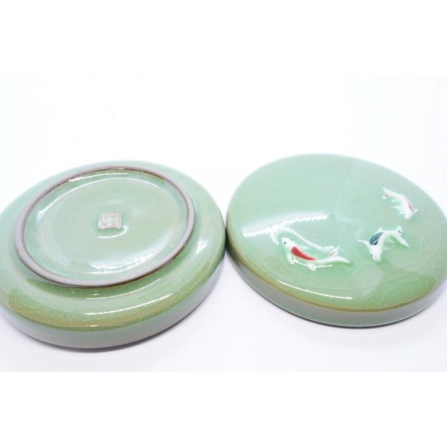 墨文字製作所 印合 墨合 錦鯉 陶器製 直径11cm 色:深緑